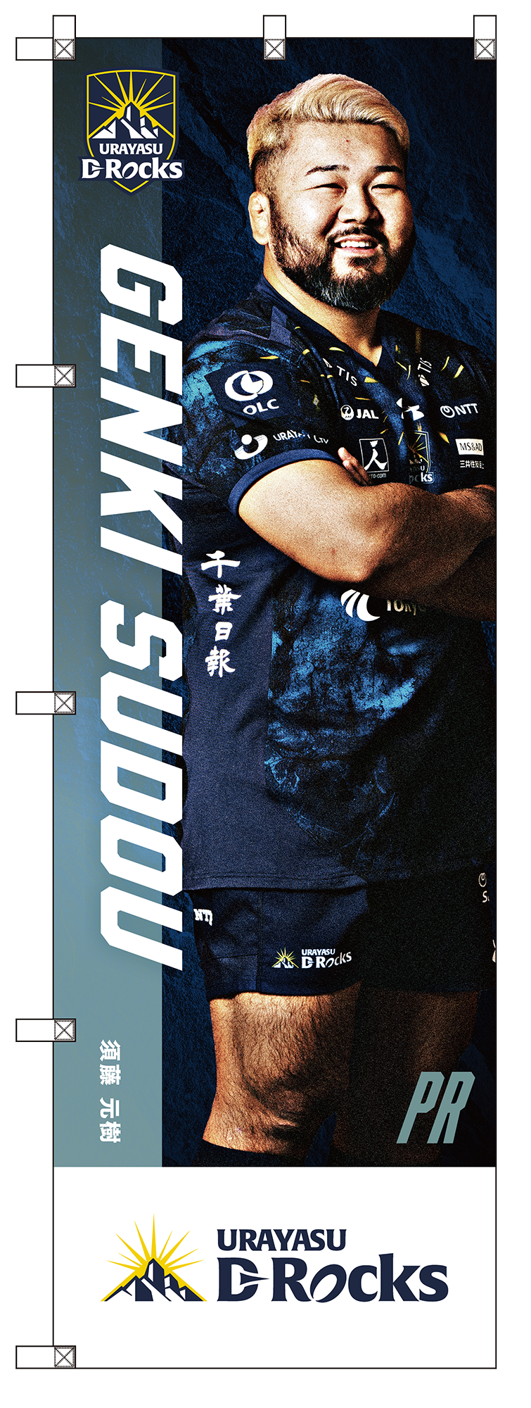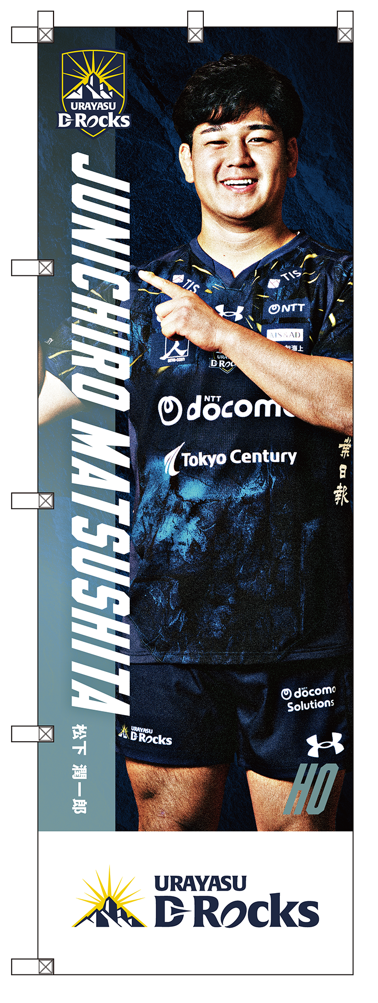 ホストゲームの会場で掲出している選手ビジュアルのぼりを限定グッズとして受注販売いたします。